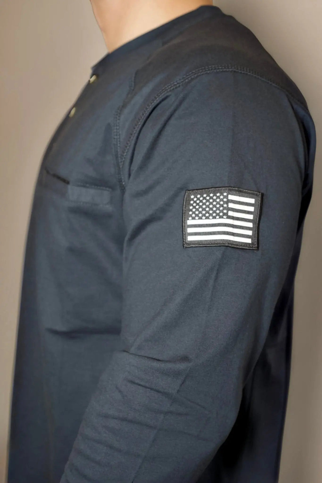 - Left chest pocket with 1” Velcro in the middle