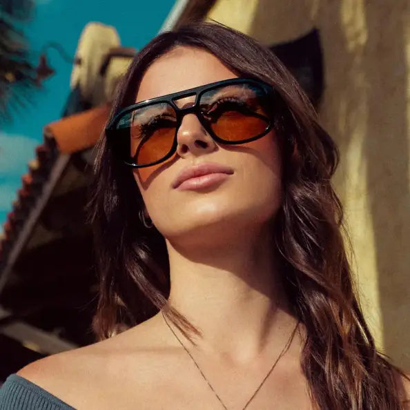 Gaia from the Masha Collection brings style down to earth. These retro-cool aviators with a modern twist feature see-through brown-tan lenses and a sleek black frame, making them as on-trend as they are understated. Perfect for days when subtlety speaks louder than words, Gaia is your go-to for a clean, polished look that doesn’t have to try too hard.